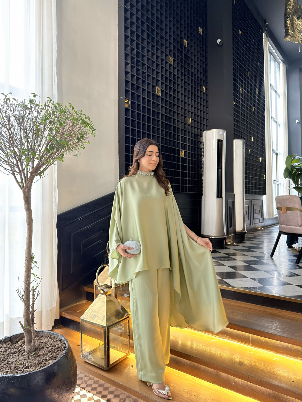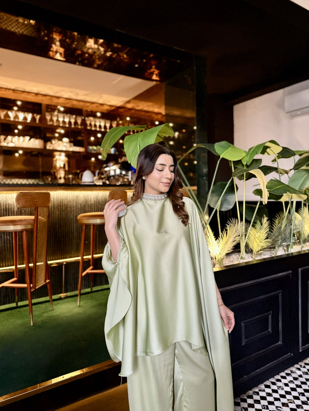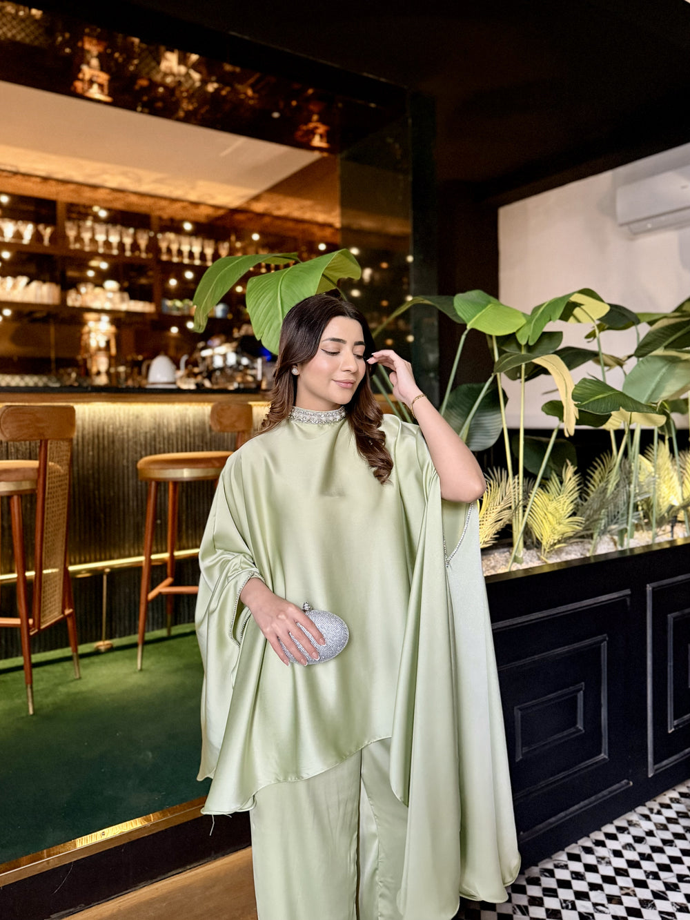The Soft Swell – Crystal Sage co-ord set is designed to flatter the figure while maintaining a soft, graceful silhouette. With its luxurious details and fluid movement, this piece will leave a lasting impression at any refined gathering.